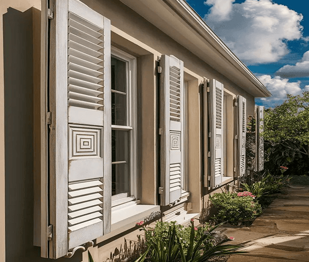 As the name suggests, solid shutters cover the entire window with a solid wood panel.